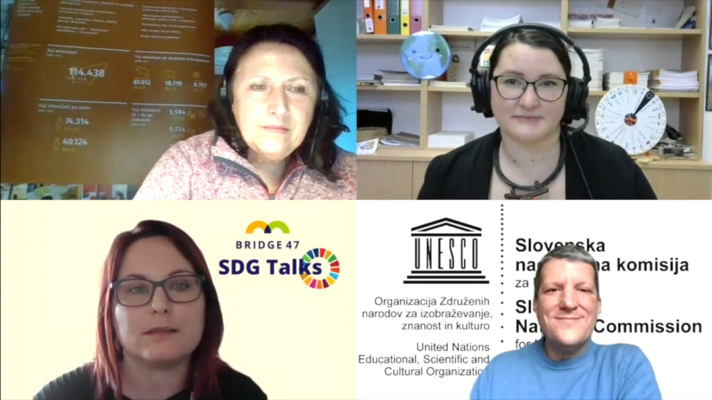 Na spletnem pogovoru o ciljih trajnostnega razvoja in kakovostnem izobraževanju SDG Talks smo gostili Gašperja Hrastelja, direktorja Urada za UNESCO in generalnega sekretarja Slovenske nacionalne komisije za UNESCO ter mag. Zvonko Pangerc Pahernik, vodjo promocijskega in informacijskega središča ter vodjo projektov TVU in EPUO iz Andragoškega centra Slovenije.